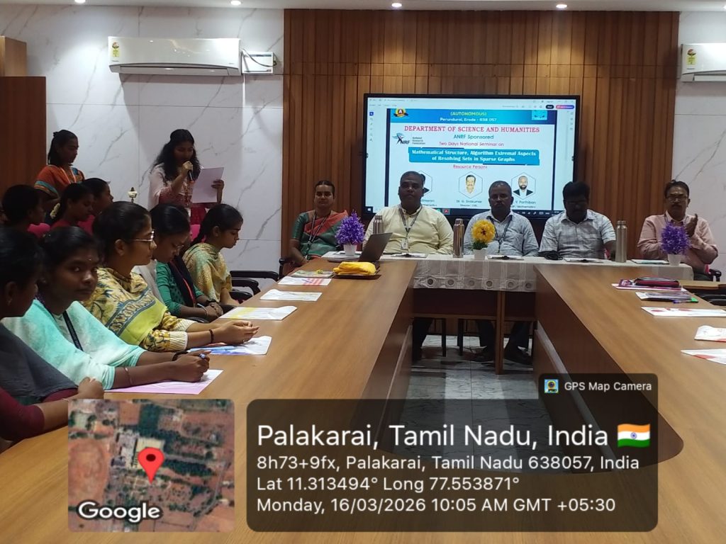 The ANRF-sponsored two-day National Seminar on “Mathematical Structure, Algorithm and Extremal Aspects of Resolving Sets in Sparse Graphs,” held on 16–17 March 2026 at the First Year Seminar Hall, ESEC, was successfully coordinated by Dr. S. Senthilvelavan (Director/First Year) and Ms. N. S. Rani Selvanayage (AP/Mathematics). The event brought together researchers, academicians, and students to explore recent advancements in graph theory and its practical applications. It significantly enhanced participants’ understanding of resolving sets, metric dimension, and extremal properties in sparse graphs, while emphasizing efficient algorithmic approaches for solving real-world problems. Through expert lectures, paper presentations, and interactive discussions, the seminar fostered knowledge exchange, encouraged collaborative research, and inspired innovative directions in soft computing and combinatorial optimization. Overall, the seminar made a valuable contribution to strengthening research capabilities and deepening insights into modern mathematical and computational techniques.