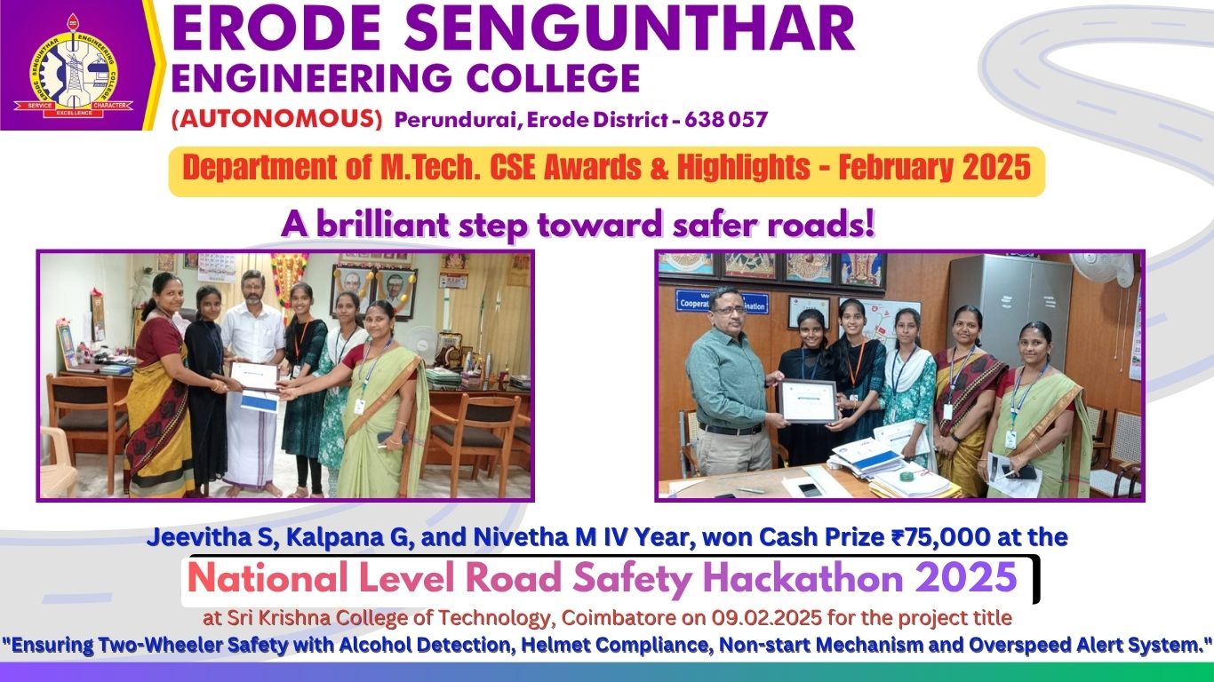 | 2 | Balakumaran S (II Year M.Tech CSE) | Nandha Engineering College, Erode | IGNITRA' 25 – Paper Presentation “Cyber Defense using AI” | Second Prize – Cash Award Rs.500 |